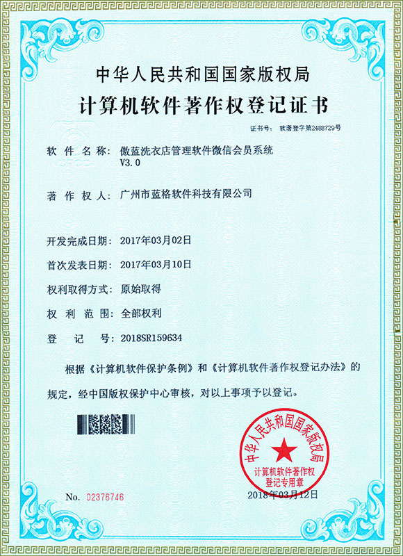 • 汽車美容管理軟件微信會員系統著作權登記證書