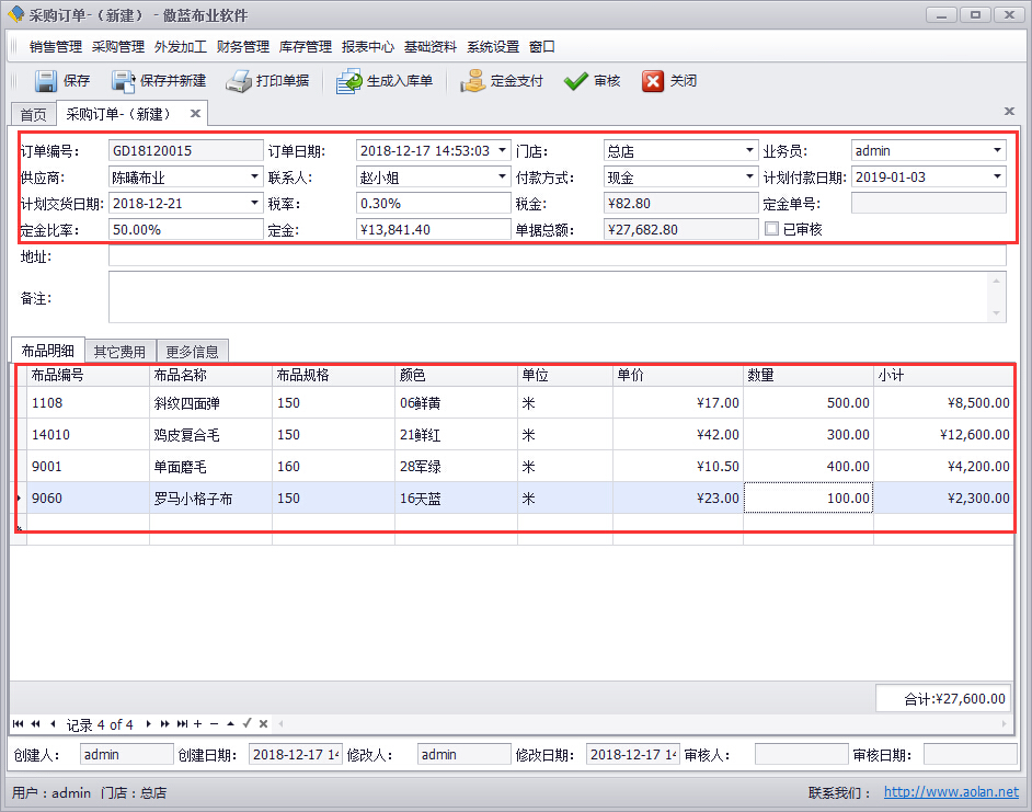 采購訂單在傲藍(lán)布業(yè)軟件中的具體操作步驟說明,請(qǐng)點(diǎn)擊視頻鏈接了解。