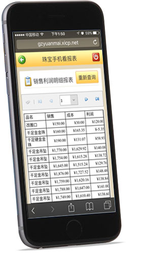 其它的營(yíng)業(yè)情況都可以通過(guò)珠寶手機(jī)看報(bào)表管理軟件的報(bào)表直觀看出,讓管理員準(zhǔn)確了解到每天的數(shù)據(jù)是否保證好這個(gè)周期的良性循環(huán),不再像以前只能做到按月統(tǒng)計(jì)、按年統(tǒng)計(jì)做不到統(tǒng)計(jì)到每一天。從而通過(guò)每日經(jīng)營(yíng)情況報(bào)表數(shù)據(jù), 查看企業(yè)為銷(xiāo)售一定種類(lèi)和數(shù)量產(chǎn)品是否達(dá)到了預(yù)定的目標(biāo),通過(guò)分析比較,找出差距,明確薄弱環(huán)節(jié),進(jìn)一步采取有效措施。