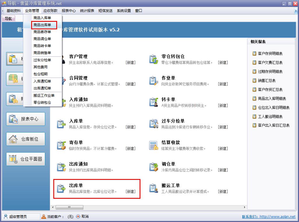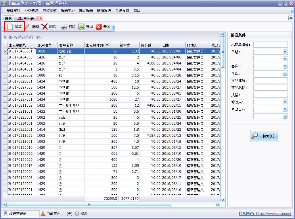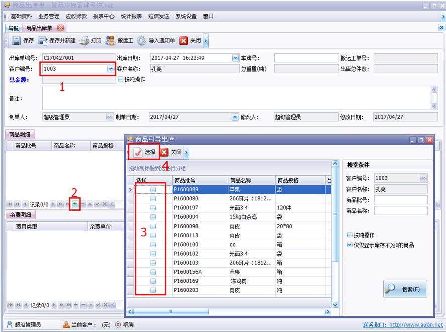 傲藍(lán)冷庫倉儲管理軟件,商品出庫單如何操作?