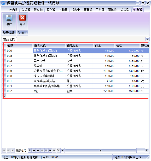 傲藍(lán)皮具護(hù)理店收銀系統(tǒng)產(chǎn)品銷售中護(hù)理產(chǎn)品的管理及銷售的具體操作步驟如下:
