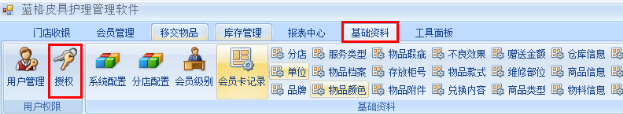 1、點擊基礎資料——授權,如下圖所示: