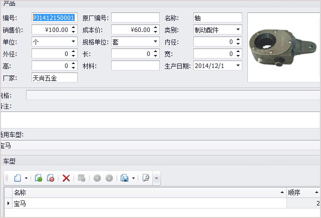 傲藍汽車配件銷售管理系統,是一款性價比非常高的汽車配件管理軟件,它界面優美,操作簡單直觀的傻瓜式進銷存,它強大的配件信息管理,提供零配件的編號,出廠編號,名稱,規格,類別,成本單價,銷售單價,生產廠家,適用車型等信息記錄,只要記住部分配件信息,就能即時查詢到相關的配件,并支持提供配件圖片管理,讓您輕輕松松管理配件!
