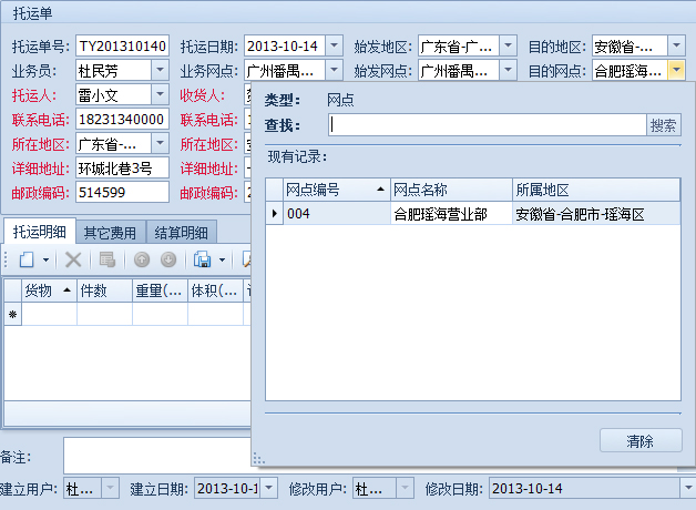 (傲藍(lán)物流軟件-輸入始發(fā)地區(qū),始發(fā)網(wǎng)點(diǎn)、目的地區(qū)、目的網(wǎng)點(diǎn))