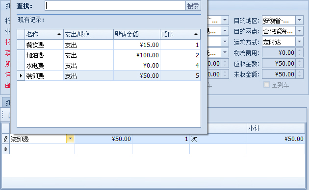 (傲藍(lán)物流軟件-添加其它費(fèi)用明細(xì))