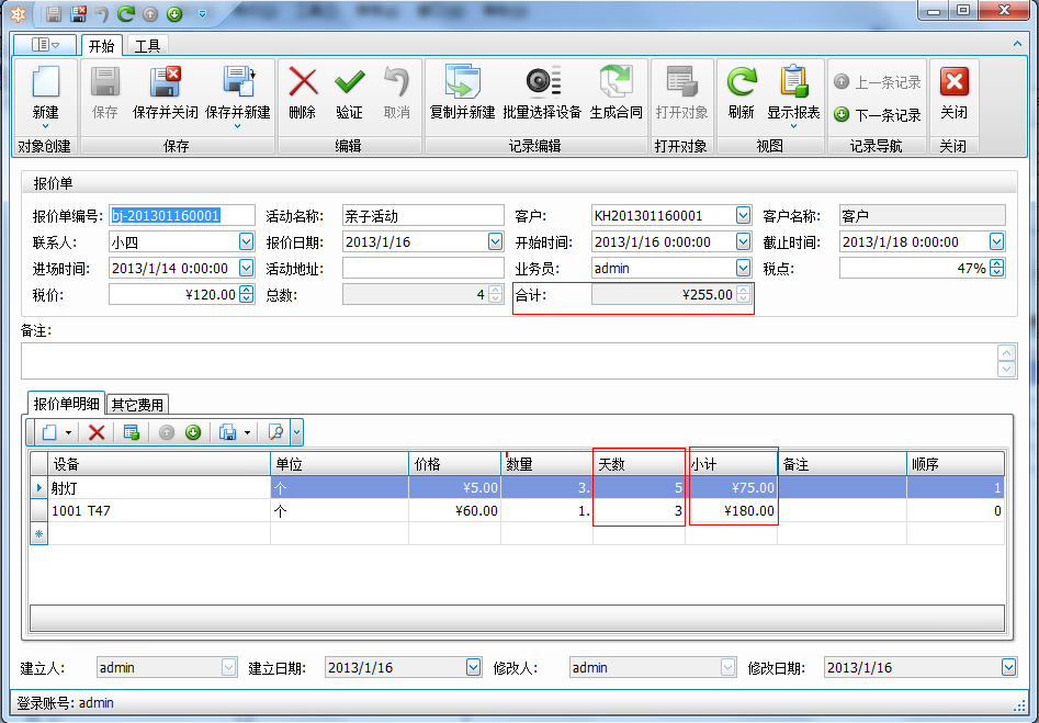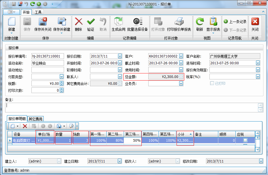 - 客戶同時(shí)要舉行有三場的活動(dòng),在傲藍(lán)舞臺(tái)租賃管理軟件里怎樣給客戶報(bào)價(jià)?